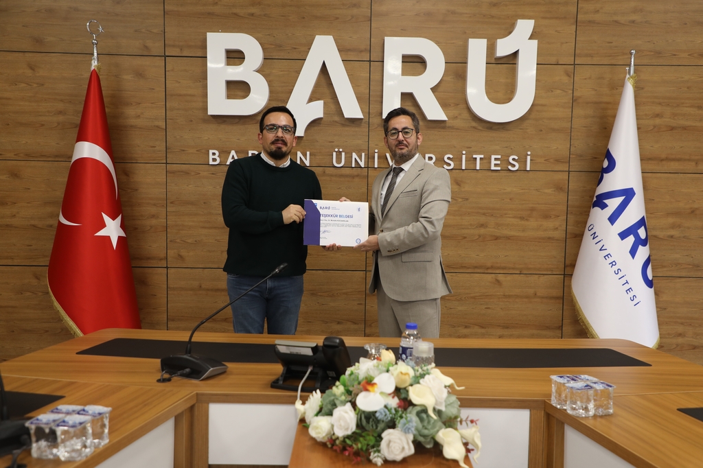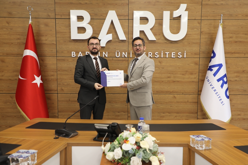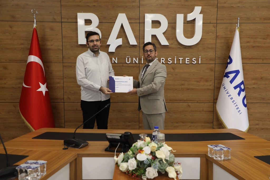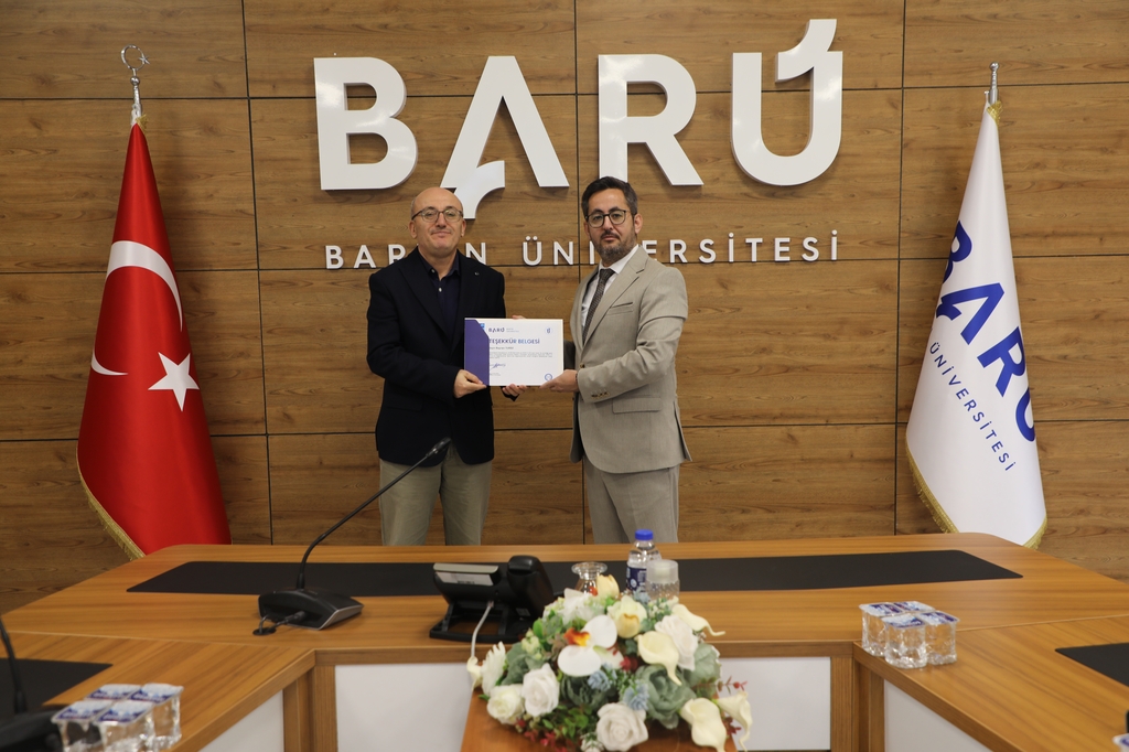Gerçekleştirilen toplantıların ardından 12.01.2026 tarihli kapanış toplantısı ile Kurum İç Değerlendirme süreci tamamlandı. Sürece katkı sunan Kurum İç Değerlendirme Takımı üyelerine, Rektör Yardımcısı Prof. Dr. Yafes Yıldız tarafından Teşekkür Belgeleri takdim edildi.