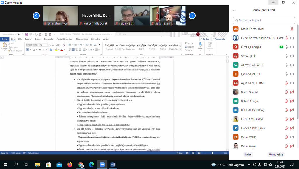 BİDR Klavuzu ve BİDR Usul ve Esasları Kalite Komisyon Üyelerine Sunuldu.