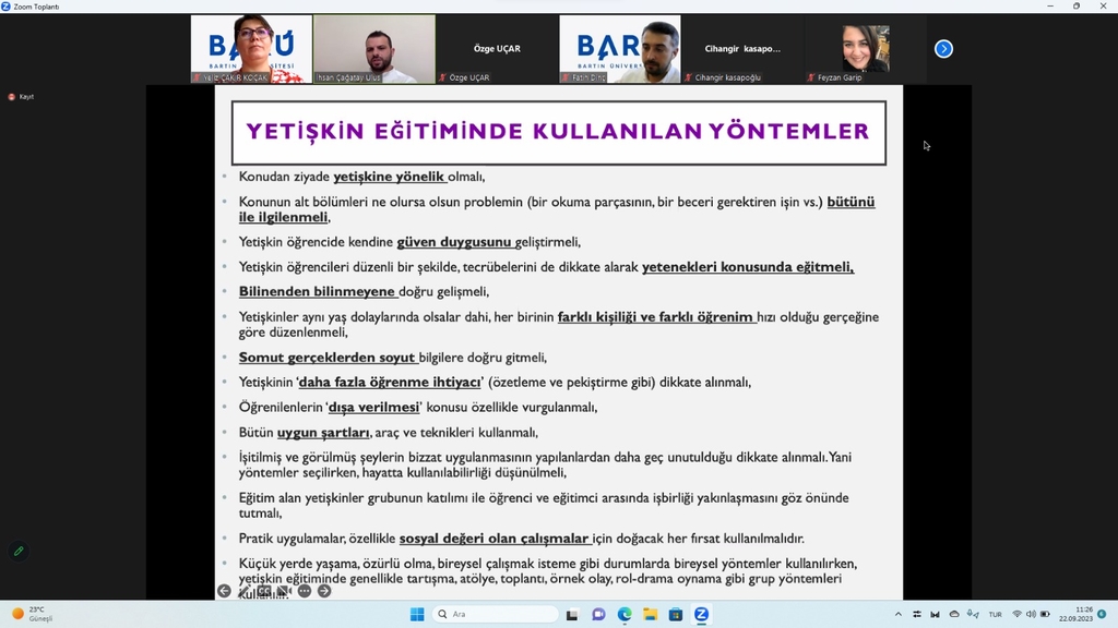 Koordinatörlüğümüz 2023 Yılı Eğiticilerin Eğitimi Yol Haritası Kapsamında 22.09.2023 Tarihinde Eğitim Düzenledi