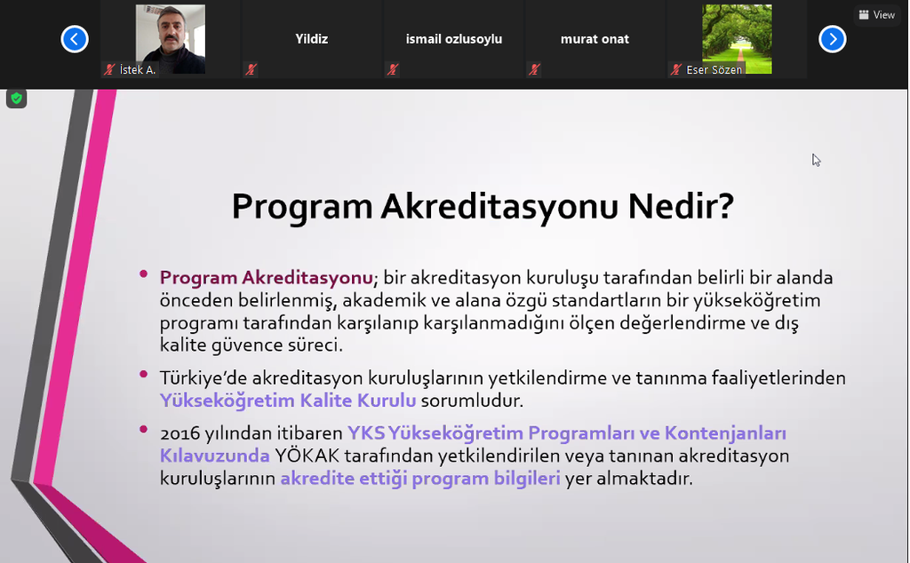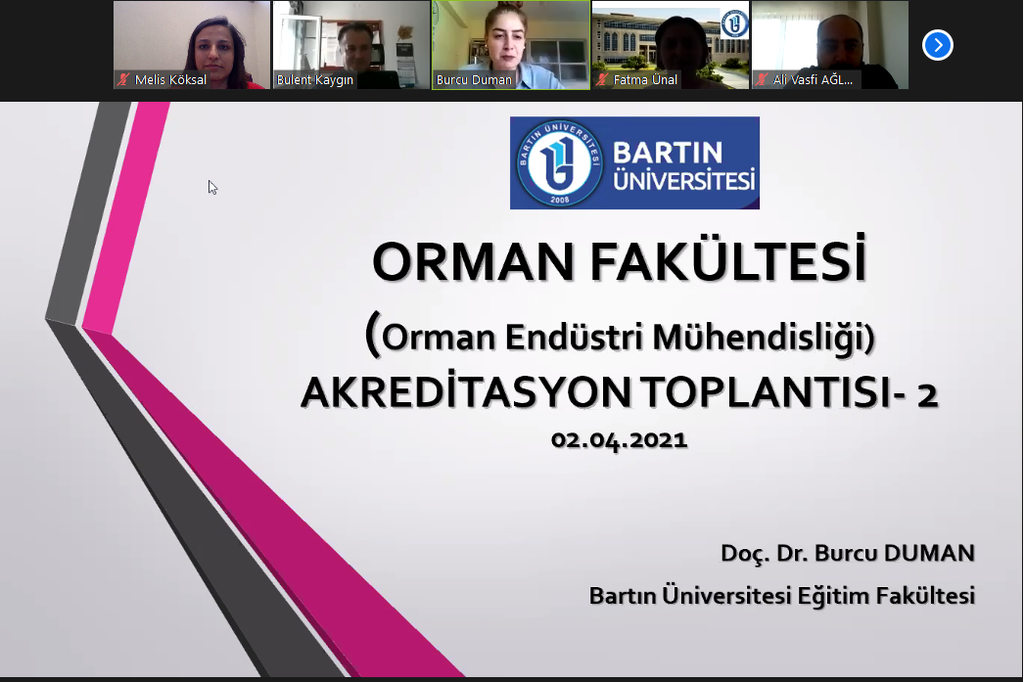 02.04.2021 tarihinde Kalite Koordinatörlüğü aracılığıyla Bartın Üniversitesi Orman Fakültesi Orman Endüstri Mühendisliğine Doç.Dr. Burcu DUMAN ve Doç.Dr. Fatma ÜNAL tarafından program akreditasyonu ile ilgili bilgilendirme toplantısı yapıldı. Çevrimiçi toplantıya katılan Orman Endüstri Mühendisliği akademik personelleri bu eğitimin düzenlenmesine öncülük eden Kalite Koordinatörü Doç.Dr. Fatma ÜNAL'a, sunumlarıyla bilgilendirme yapan Doç.Dr. Burcu DUMAN'a ve koordinatörlük personellerine teşekkürlerini ilettiler.