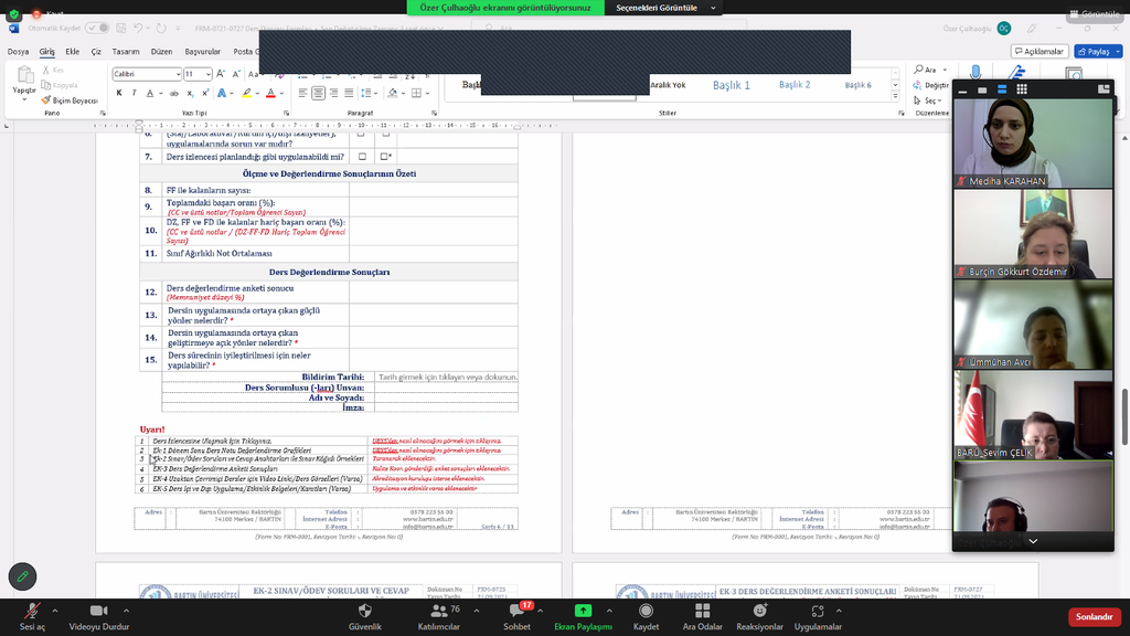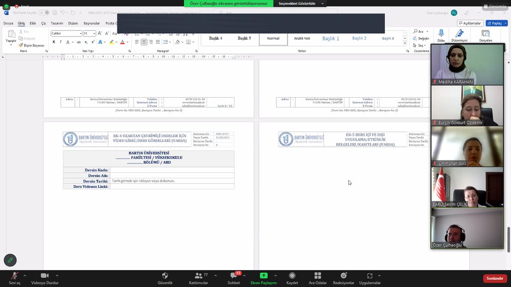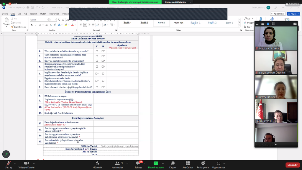 Koordinatörlüğümüz Ders Dosyalarının Güncellenmesi hakkında Prof. Dr. Sevim ÇELİK başkanlığında çevrimiçi toplantı gerçekleştirdi.