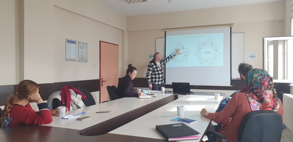 Üniversitemiz Engelli Öğrenci Birimi Koordinatörlüğüne Kalite Kültürüne Yönelik; Birim İç Derğerlendirme Raporu, Eylem Planları ve PUKÖ Temelli Eylem Planı Gerçekleştirme Raporu hakkında eğitim verildi.