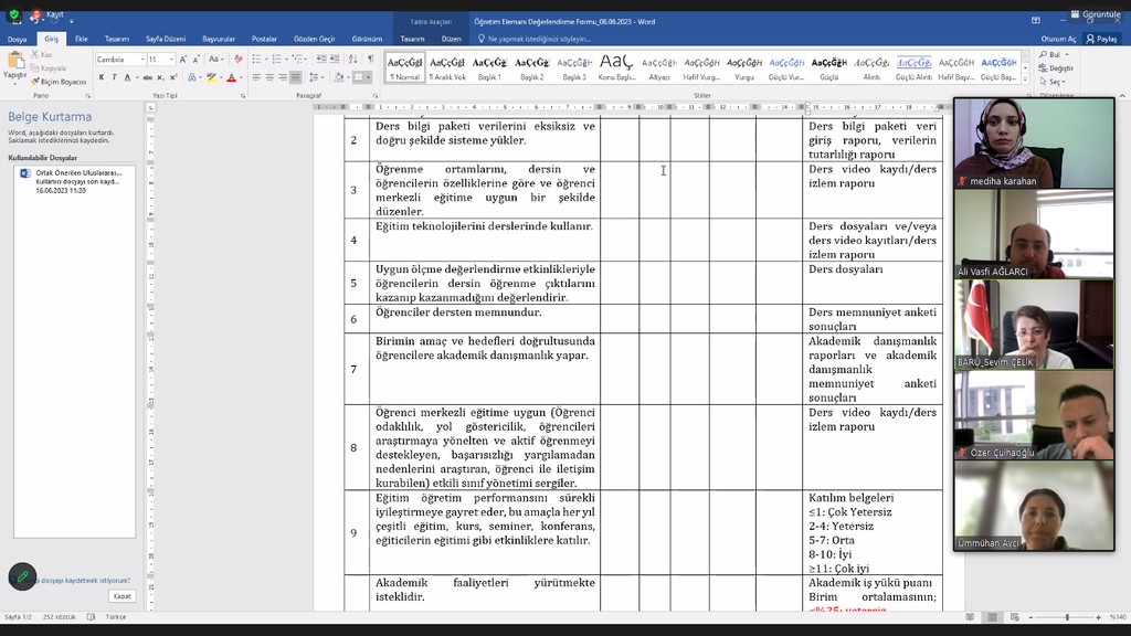 Kalite Koordinatörlüğü olarak 19.06.2023 tarihi saat 10:00'da Rektör Yardımcısı Prof. Dr. Sevim ÇELİK başkanlığında birim içi toplantı gerçekleştirdi. Toplantıda Ders Dosyası Formları ve Öğretim Elemanlarının Çok Yönlü Performans Değerlendirmesi ve Ödüllendirme Yönergesi ile formları hakkında görüş alışverişinde bulunuldu.