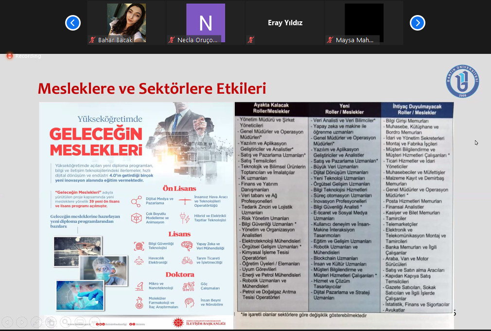 Koordinatörlüğümüzün Organizasyonunda Üniversitemizde 'Dijital Dönüşüm Teknolojilerinin Mesleklere ve Sektörlere Etkisi' Eğitimi Verildi.