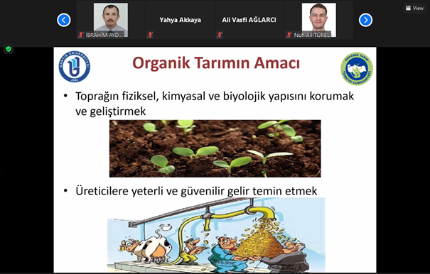 30.04.2021 tarihinde Kalite Koordinatörlüğü aracılığıyla Bartın Meslek Yüksekokulun'da Bitkisel ve Hayvansal Üretim Bölümünden Öğr. Gör. Nazlı İlke EKEN TÜRER tarafından 'Organik Ürün Farkındalığı' eğitimi verildi. Bartın Meslek Yüksekokulu Müdürü Doç. Dr. Ayşe GENÇ LERMİ, öğretim elemanları ve öğrenciler katıldı. Çevrimiçi eğitime katılanlar eğitime ev sahipliği yapan Kalite Koordinatörüne ve personeline teşekkürlerini ilettiler.