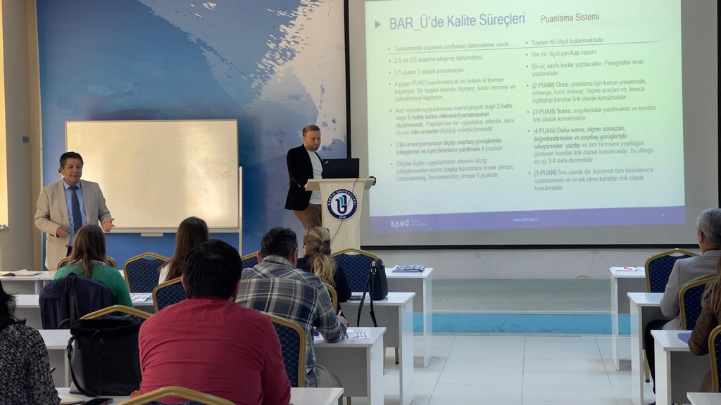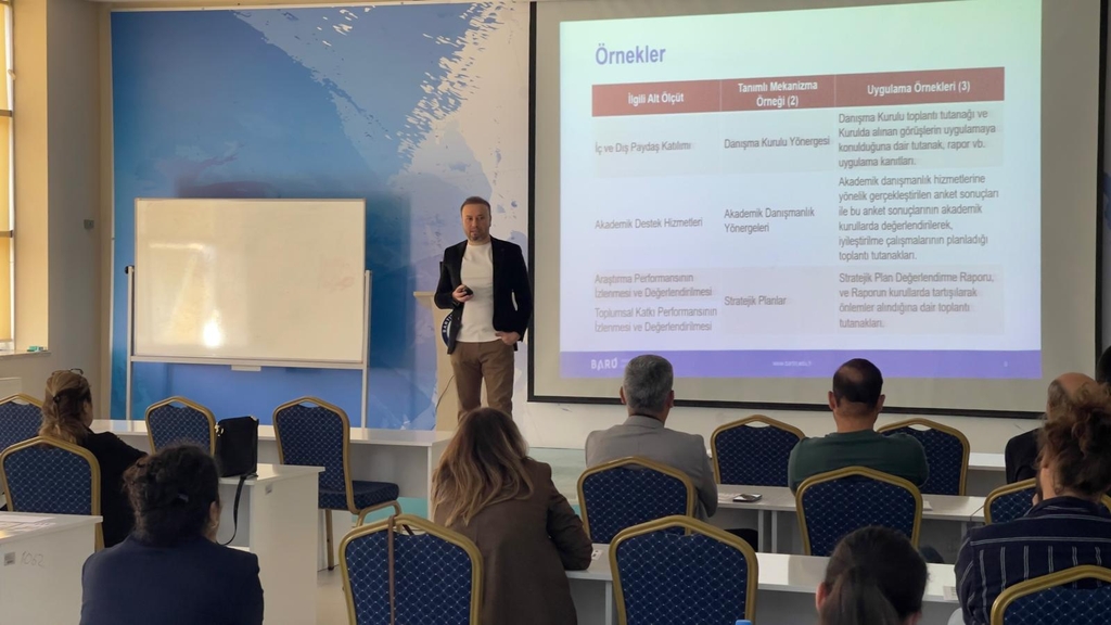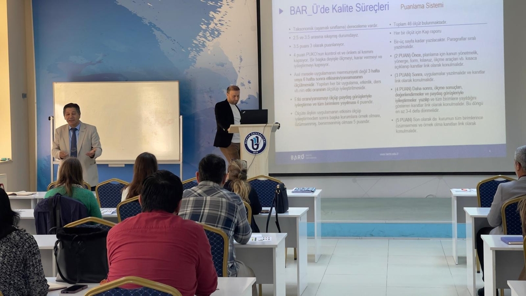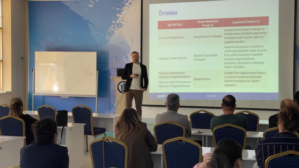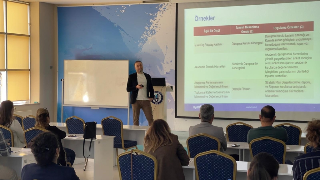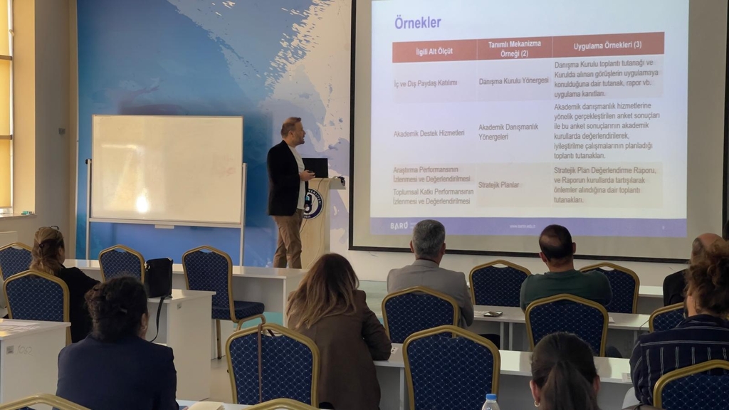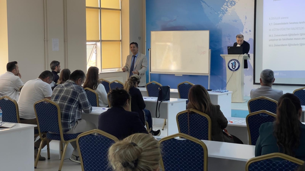 Söz konusu Yönergenin 5'inci maddesinin 2'nci fıkrasında "Kalite Koordinatörlüğü, alt birimleri ile kalite güvencesi oluşturma süreçlerinin ve kalite kültürünün yaygınlaştırılması faaliyetlerinin işletilmesinde Kalite Komisyonuna destek sağlamakla sorumludur." ibaresi yer almakta olup İç Kalite Güvencesi Süreci gereği yürütülen 4 (dört) Ana Süreç (Liderlik, Yönetişim ve Kalite Ana Süreci, Eğitim ve Öğretim Ana Süreci, Araştırma ve Geliştirme Ana Süreci ve Toplumsal Katkı Ana Süreci) ve bağlı Alt Ölçütlerinde görev yapan akademik/idari personel ile Kalite Komisyon Üyelerinin katılımıyla 17.10.2025 tarihinde saat 15.00'te Mimar Sinan Dersliği zemin katta Kalite Koordinatörü Prof. Dr. Çetin SEMERCİ başkanlığında "Kurumsal Değerlendirme ve İyileştirme Çalışmaları Çalıştayı" gerçekleştirilmiştir.