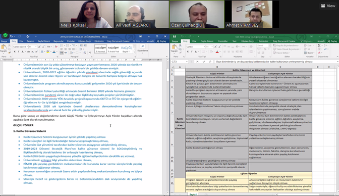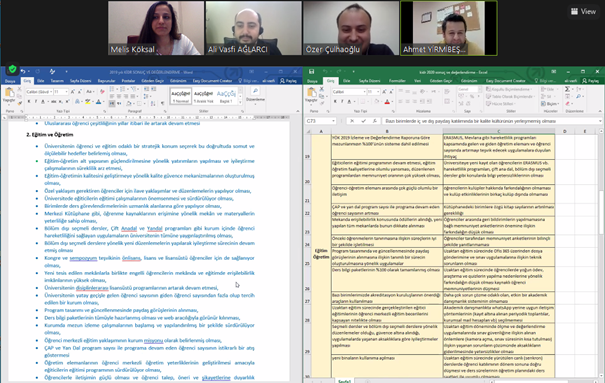 Rektör Yardımcısı Prof. Dr. Sedat YAZICI'nın başkanlığında Kurum İç Değerlendirme Raporu' nun (KİDR) son halinin değerlendirilmesi ile ilgili çevrimiçi toplantı gerçekleştirilmiştir.