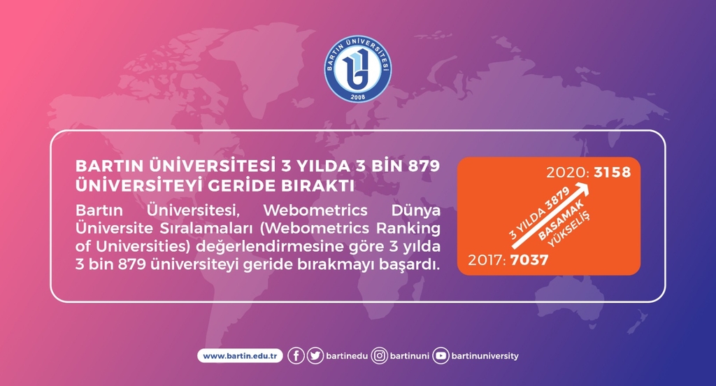 Üniversitemiz, Webometrics Dünya Üniversite Sıralamaları (Webometrics Ranking of Universities) değerlendirmesine göre 3 yılda 3 bin 879 üniversiteyi geride bırakmayı başardı.