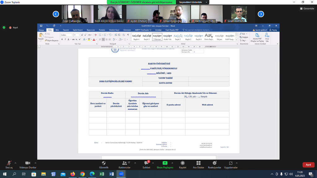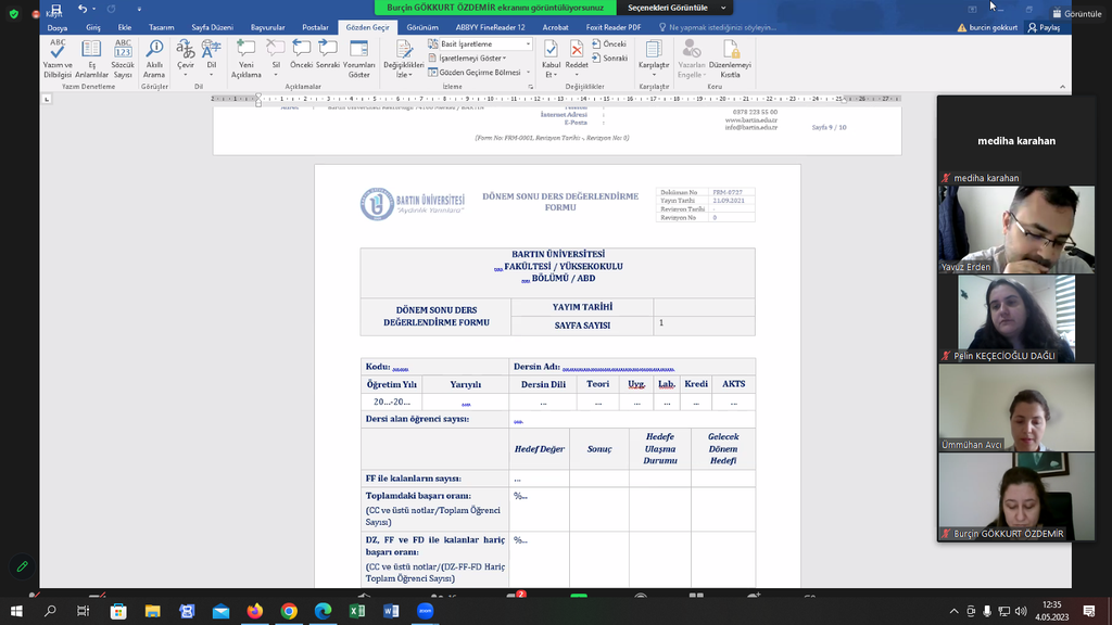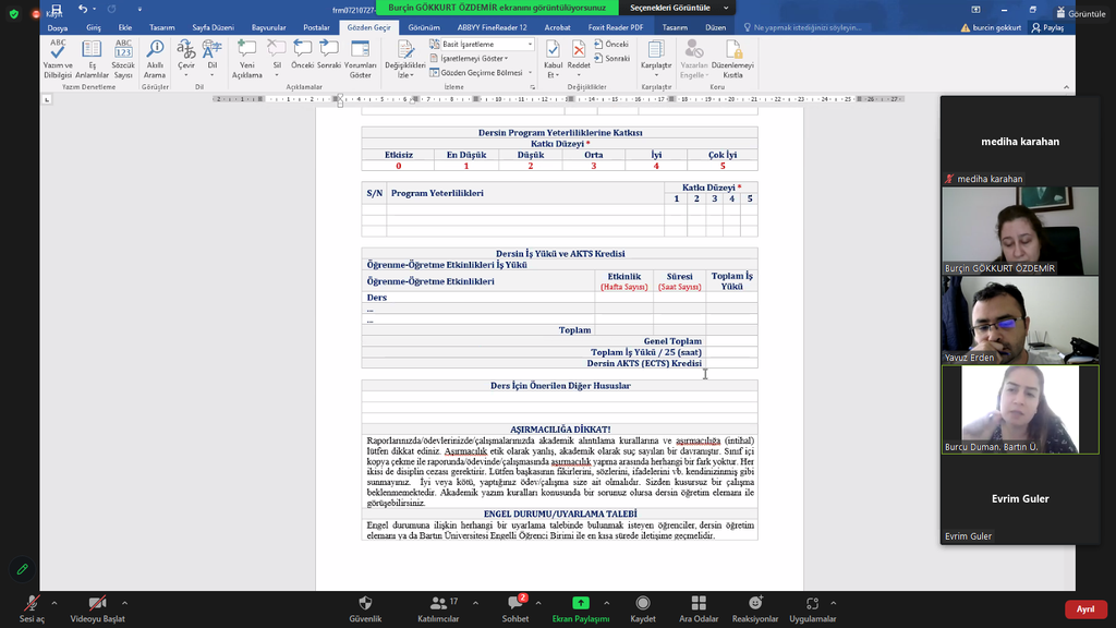 Koordinatörlüğümüz aracılığıyla Üniversitemiz akademik birimlerine yönelik yürütülen ve yürütülecek olan program akreditasyon çalışmalarında yardımcı olmak ve ders dosyalarındaki eksiklikleri gidermek üzere Koordinatörümüz Doç. Dr. Ümmühan AVCI başkanlığında "Ders Dosyaları Güncelleme Çalışma Grubu" oluşturuldu. Söz konusu süreci yönlendirecek olan Ders Dosyaları Güncelleme Çalışma Grubu ilk toplantısını 04.05.2023 Perşembe günü 11.00-13.30 saatleri arasında çevrimiçi olarak gerçekleştirdi.